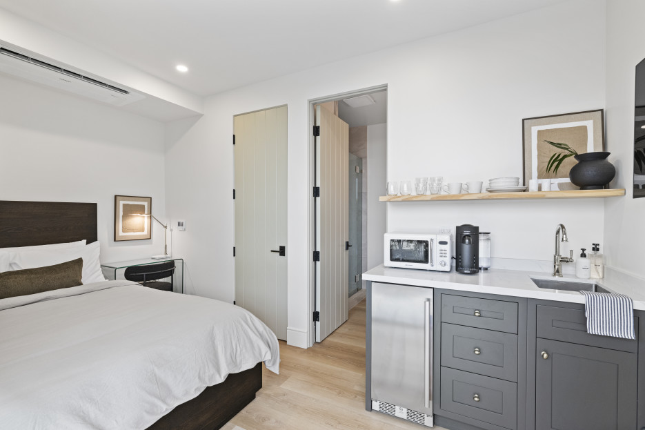 This 191 sqft queen-bed unit has a flat-screen smart TV with streaming, casting, or Airplay features and a Samsung split heating/AC system for ultimate comfort. A private en-suite bath with a rain shower and a kitchenette with Nespresso, microwave & mini fridge complete this stay in Santa Barbara. *Please note the unit is small ideal for 1 person and shorter stays *