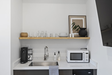 This 245 sqft king-bed unit has a flat-screen smart TV with streaming, casting, or Airplay features and a Samsung split heating/AC system for ultimate comfort. A private en-suite bath with a rain shower and a kitchenette with Nespresso, microwave & mini fridge complete this stay in Santa Barbara.