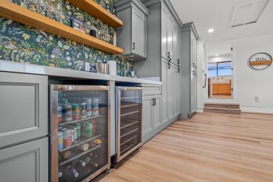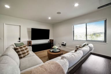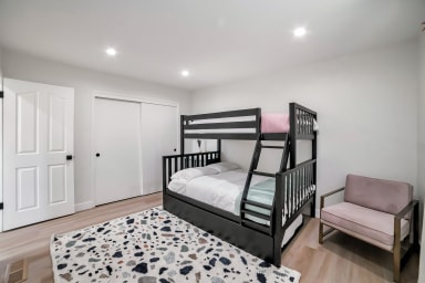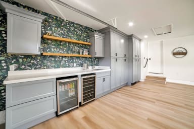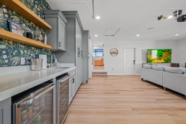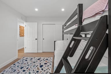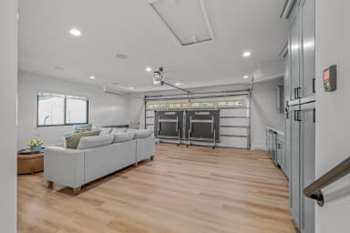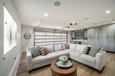 Head to the bonus room, equipped with a 75" TV, comfortable seating, karaoke machine, wet bar (no booze included =) ), ping pong table, and laundry closet. The attached garage conversion is not available for parking vehicles; however, there is ample parking in front of the private access home. The additional stand-alone garage is used for owner storage and is not made available to guests. You will find LED ambient lighting accenting throughout the entire home, providing warmth and comfort to set the mood.